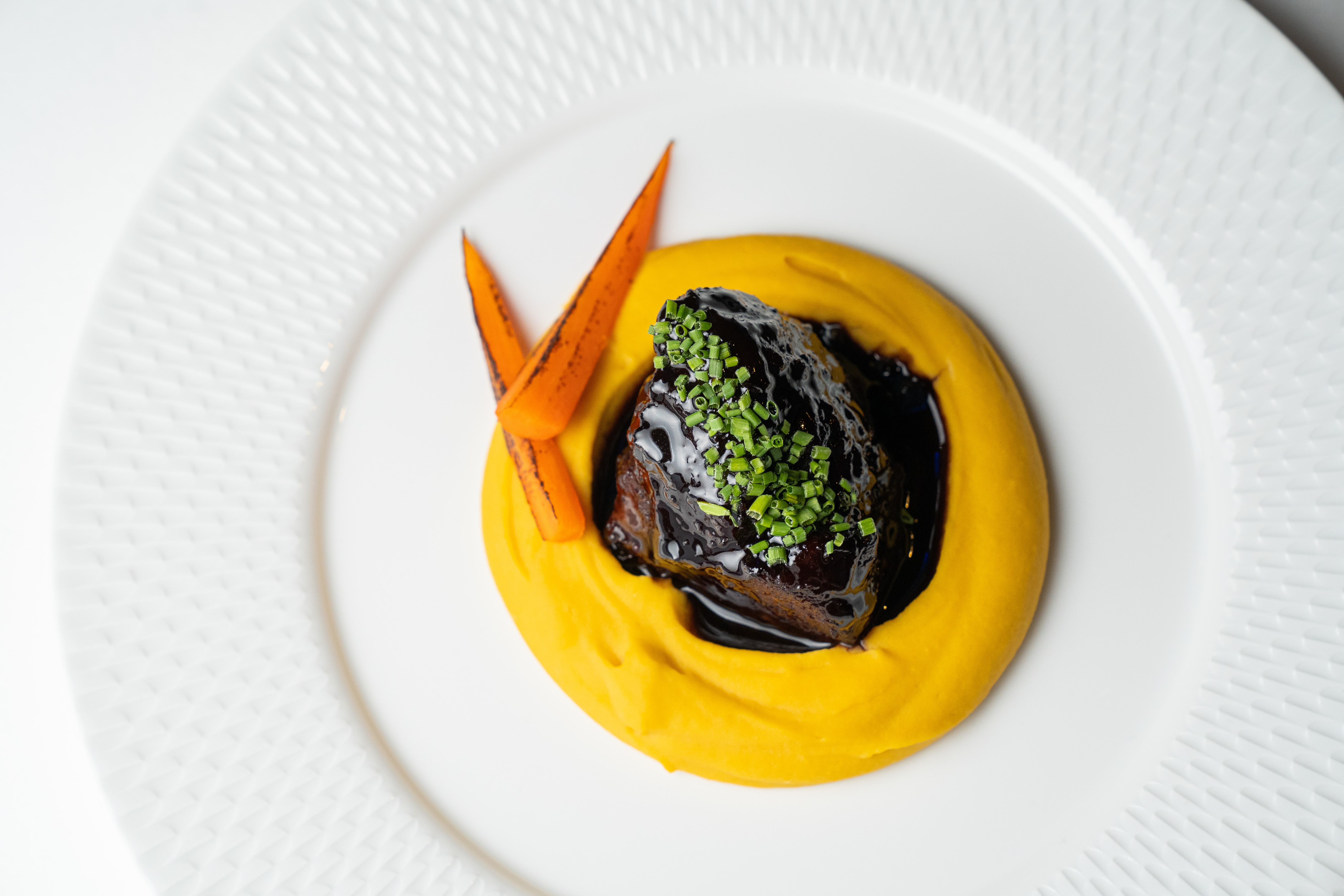 Говяжьи щёчки с муссом из бобовых