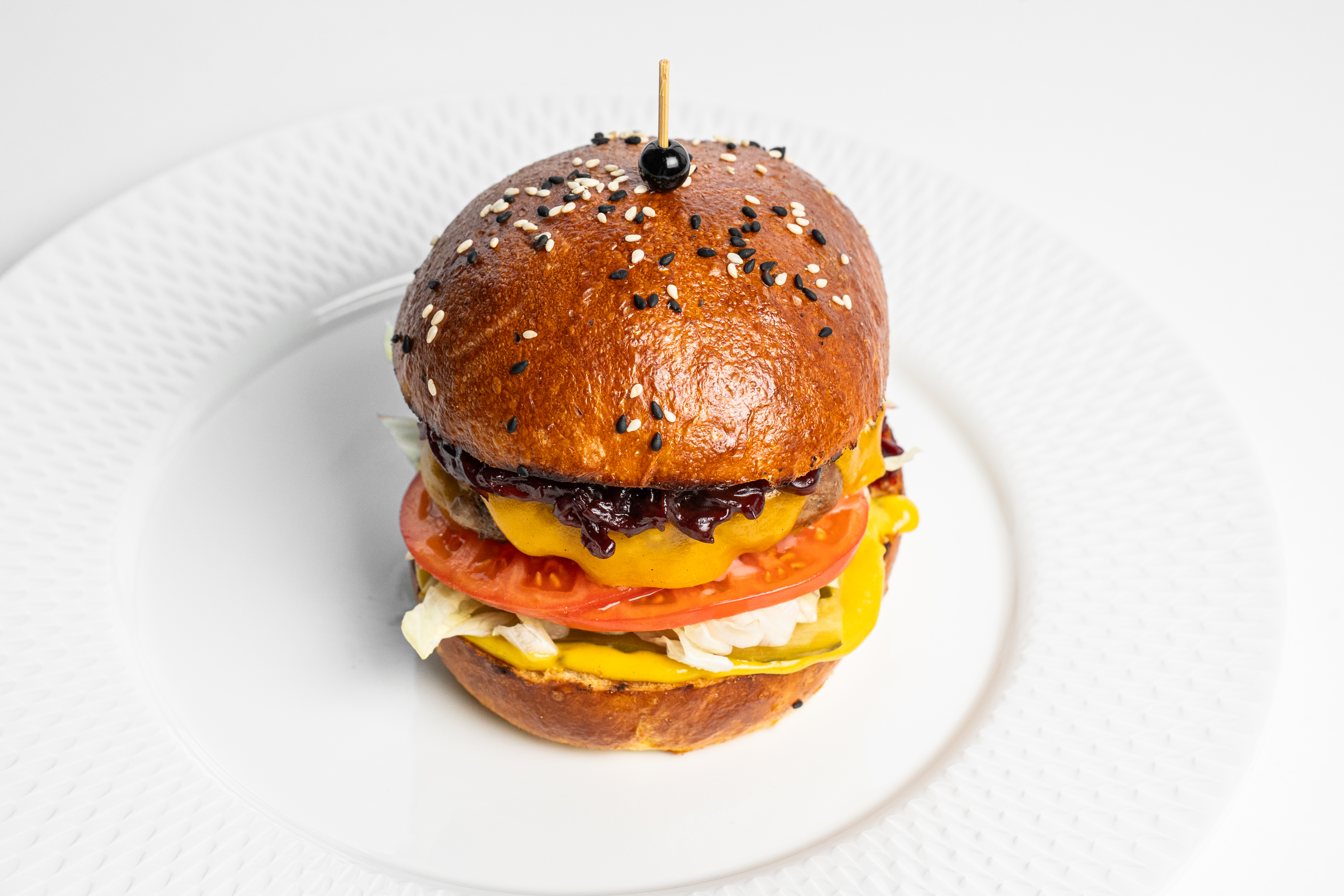 Бургер из мраморной говядины с карамелизированным луком